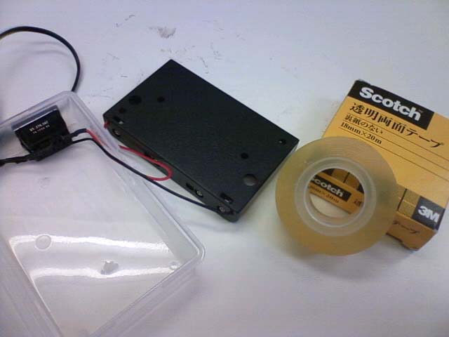 電池ボックスとケースがぐらつかないように、両面テープで固定するみたいだね。ぺた。