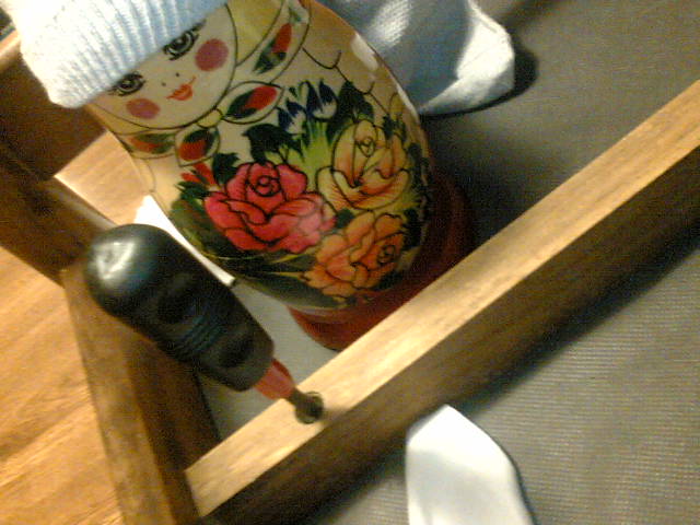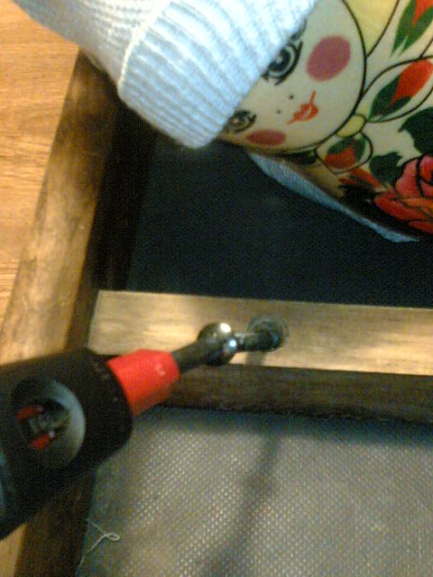 あとはまたドライバーで座面とイスを合体させます。