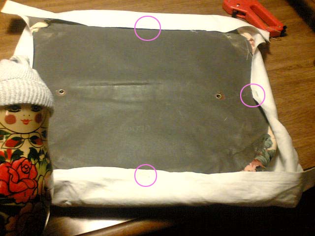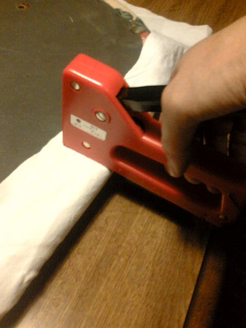 座面の裏に布をタッカーで留めただけの状態で、何の始末もしていませんが、