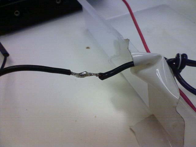 こっちもはんだごてでつないでるね。あっ、固定するためにテープでとめてる。