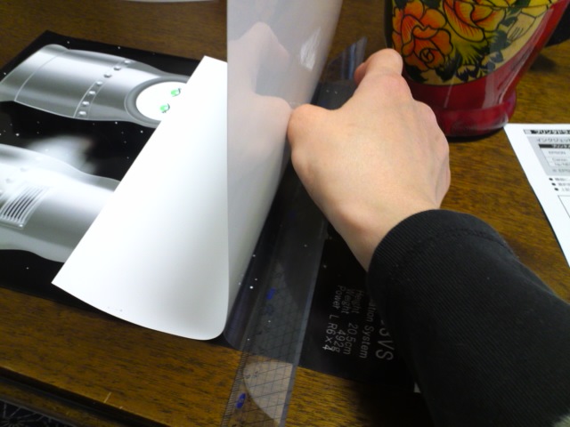 保護フィルムが貼れたら、いよいよクリアファイルに貼っていきます。