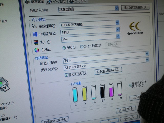 用紙とプリンタの設定を合わせて、四辺フチなし印刷にしたよ。
