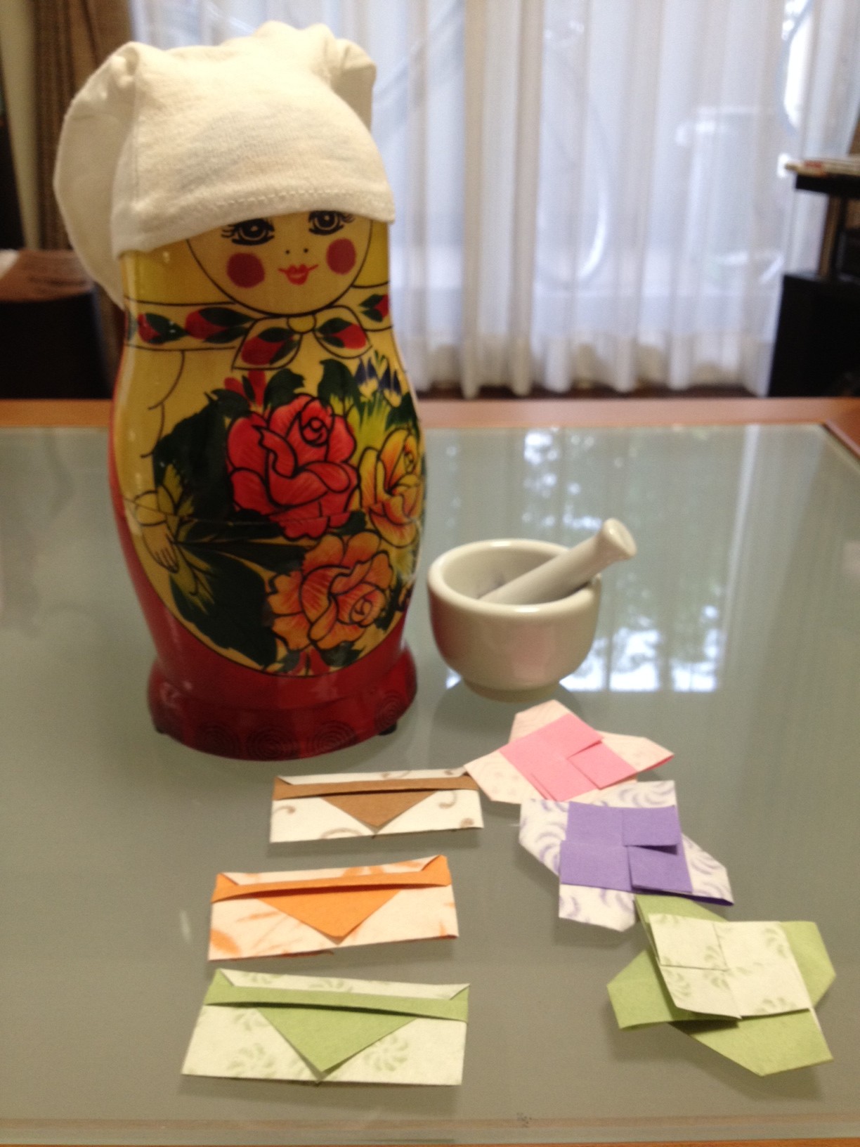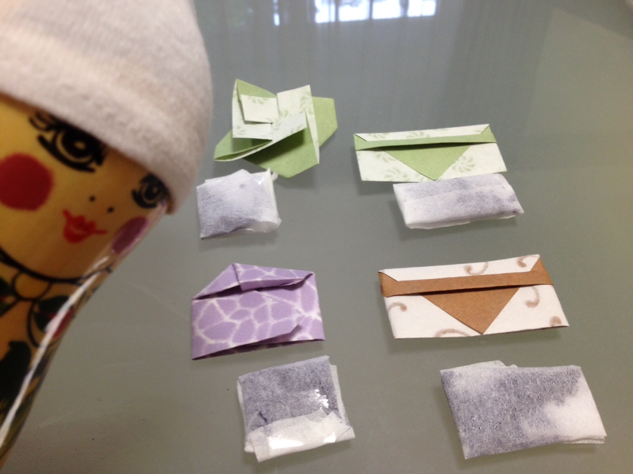 グルコはほかに、おうちにあった粉薬の袋を解体して、再現して折ってみた。
