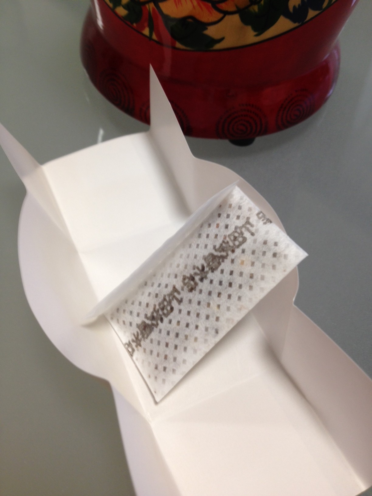 先ほどすりつぶしたお香をティッシュにくるんで入れます。