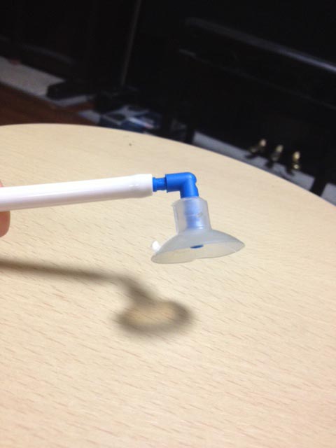 吸盤にキリやドライバーなどで穴を貫通させてジョイントを通すわけですが、